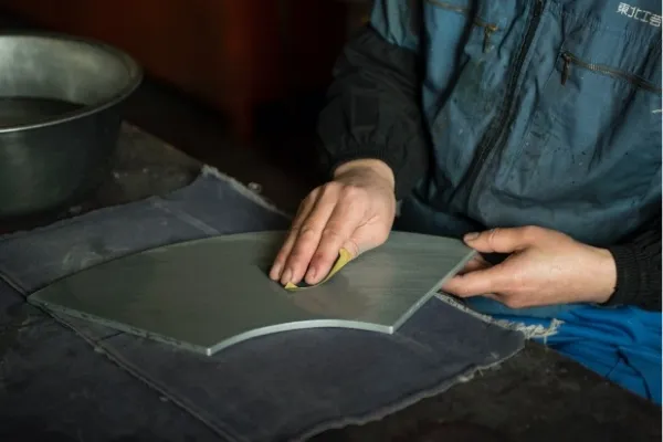 銀粉の粒子の凹凸を滑らかにするとともに、上塗りとの密着をよくするための工程です。