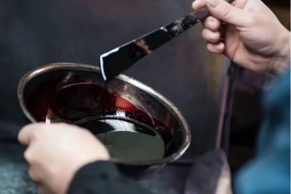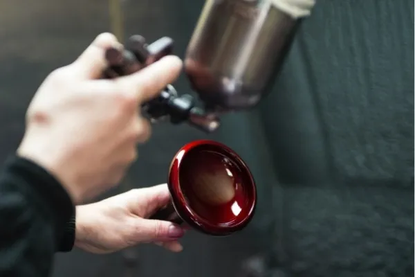 その日の気温や湿度、塗るものの形や大きさに合わせて、色味や粘度を調整し、調合していきます。