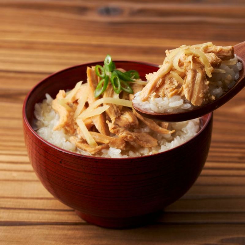 具材はシンプルに鶏肉、しょうが、白ごまのみで、鶏の旨みを引き出しています。あっさりとした味わいで、ごはんがさらさらと食べられるかけごはんの素です。